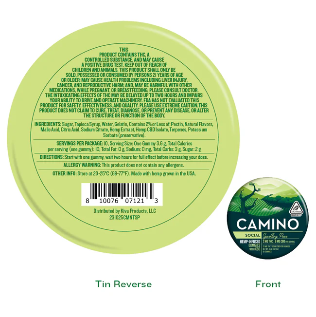 Camino Sparkling Pear ‘Social’ 2mg : 6mg CBD Gummies